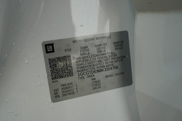 Audio system, chevrolet infotainment 3 plus system 8 diagonal hd color touchscreen, am/fm stereo, bluetooth audio streaming for 2 active devices, apple carplay and android auto capable, enhanced voice recognition, in-vehicle apps, cloud connected personalization for select infotainment and vehicle settings. subscription required for enhanced and connected services after trial period|usb charging-only ports 2, located on the rear of the center console|radio, hd|usb data ports, 2 includes auxiliary input jack, located on the front console (not available with (iot) 8 diagonal chevrolet infotainment system with navigation.)|microphones, driver side and passenger side|audio system feature, 6-speaker system|chevrolet 4g lte and available built-in wi-fi hotspot offers a fast and reliable internet connection for up to 7 devices; includes data trial for 1 month or 3gb (whichever comes first) (available wi-fi requires compatible mobile device, active onstar service and data plan. data plans provided by at&t. visit onstar.com for details and system limitations.)|moldings, black beltline|headlamps, projector-type|tailgate, ez-lift and lower|cornerstep, rear bumper|fog lamps, front|bumper, rear body-color|tires, 255/65r17 all-terrain, blackwall|pickup box|mirror, spotter, located in corner of driver-side outside mirror|wheel, spare, 16 x 7 (40.6 cm x 17.8 cm) steel|tailgate, locking|tire, spare 265/70r16 all-season, blackwall|tailgate handle, black (not available with (scz) chrome tailgate handle, lpo.)|wheels, 17 x 8 (43.2 cm x 20.3 cm) dark argent metallic cast aluminum|window, rear-sliding, manual|glass, windshield shade band|mirrors, outside heated power-adjustable, body-color, manual-folding|cargo box light, back of cab|door handles, body-color|seat adjuster, power passenger lumbar control|seats, heated driver and front passenger|steering wheel controls, mounted audio controls|cruise control, electronic, automatic|seat, rear folding bench (crew cab models only.)|defogger, rear-window electric|seat adjuster, 4-way power front passenger|steering wheel, heated|visors, driver and front passenger illuminated sliding vanity mirrors|speedometer, miles/kilometers|floor covering, color-keyed carpeting|floor mats, carpeted rear|lighting, interior, roof, rear courtesy and dual reading lights (crew cab models only.)|remote vehicle starter system|console, floor, front compartment, custom|theft-deterrent system, unauthorized entry|lighting, interior, dual reading|wireless charging for compatible cell phones (expanded capability)|seat adjuster, power driver lumbar control|air conditioning, single-zone automatic climate control|handles, door release, front and rear, chrome|floor mats, carpeted front|windows, power with driver express-up and down|display, driver instrument information enhanced, multi-color|steering wheel, leather-wrapped|mirror, inside rearview auto-dimming|theft-deterrent system, immobilization|seat adjuster, driver 6-way power|steering column, tilt and telescopic|remote keyless entry, extended range|door locks, power|console, overhead|seats, front bucket|rear axle, 3.42 ratio (requires (lgz) 3.6l di dohc v6 engine or (lwn) 2.8l duramax turbo-diesel engine on crew cab short box models. standard on crew cab long box models.)|engine, 3.6l di dohc v6 vvt (308 hp [230.0 kw]
