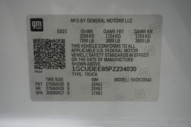 Wi-fi hotspot capable (terms and limitations apply. see onstar.com or dealer for details.)|audio system, chevrolet infotainment 3 premium system with google built-in, 13.4 diagonal hd color touchscreen, includes multi-touch display, am/fm stereo, bluetooth streaming audio for music and most phones; featuring wireless android auto and apple carplay capability for compatible phones, advanced voice recognition, in-vehicle apps, personalized profiles for infotainment and vehicle settings|bluetooth for phone, connectivity to vehicle infotainment system|wireless phone projection for apple carplay and android auto|audio system feature, 6-speaker system|mirrors, outside heated power-adjustable (when (pqb) safety package is ordered, includes (u12) perimeter lighting.)|bumper, front (body-color.)|led cargo area lighting located in pickup bed, activated with switch on center switch bank or key fob|taillamps, led with signature, animation and incandescent reverse lights|bumper, rear (body-color.)|black bowtie, (front grille)|cornerstep, rear bumper|tailgate, gate function manual with ez lift includes power lock and release|headlamps, led reflector with led signature daytime running lamps and amber tracer animation|tailgate, standard|cargo tie downs (12), fixed rated at 500 lbs per corner|mirror caps, painted (high gloss black. not available with (dpo) trailering mirrors.)|intellibeam, automatic high beam on/off|wheel, 17 x 8 (43.2 cm x 20.3 cm) full-size, steel spare|door handles, body-color|tire carrier lock, keyed cylinder lock that utilizes same key as ignition and door|tires, 265/65r18sl all-season, blackwall|lamps, cargo area, cab mounted integrated with center high mount stop lamp, with switch in bank on left side of steering wheel (incandescent on regular cab models, led on crew cab and double cab models)|fog lamps, front, led|glass, deep-tinted|wheels, 18 x 8.5 (45.7 cm x 21.6 cm) bright silver painted aluminum|tailgate and bed rail protection cap, top|tire, spare 265/70r17sl all-season, blackwall|window, power front, passenger express down|seating, heated driver and front outboard passenger|air conditioning, dual-zone automatic climate control|defogger, rear-window electric|cruise control, electronic with set and resume speed, steering wheel-mounted|exterior temperature display located in radio display|compass located in instrument cluster|seats, front 40/20/40 split-bench with covered armrest storage and under-seat storage (lockable)|steering column, manual tilt and telescoping|seat adjuster, driver 10-way power including lumbar|steering wheel, heated|usb ports, 2, charge/data ports located on instrument panel|seat, rear 60/40 folding bench (folds up), 3-passenger (includes child seat top tether anchor)|floor mats, rubberized-vinyl rear (deleted when (bkf) floor liners or lpo floor liners are ordered.)|remote vehicle starter system|seat adjuster, passenger 4-way manual|power outlet, bed mounted, 120-volt (400 watts shared with (ki4) instrument panel mounted power outlet) (vehicles built prior to 9-19-22 will include bed mounted power outlet. certain vehicles built on or after 9-19-22 may be forced to include (08r) not equipped with functional cab or bed power outlets, which removes the cab and bed power outlet functionality. see dealer for details or the window label for the features on a specific vehicle. vehicles equipped with (08r) not equipped with functional cab or bed power outlets will be eligible for later dealer retrofit to enable functionality. see dealer for details or the window label for the features on a specific vehicle.)|chevrolet connected access capable (subject to terms. see onstar.com or dealer for details.)|steering wheel audio controls|window, power front, drivers express up/down|windows, power rear, express down|door locks, power|floor mats, rubberized vinyl, front (deleted when (bkf) floor liners or lpo floor liners are ordered.)|driver information center, enhanced, 12.3 diagonal reconfigurable multicolor digital display|assist handles front a-pillar mounted for driver and passenger, rear b-pillar mounted|floor covering, color-keyed carpeting|rear seat reminder|air vents, rear, heating/cooling|seat trim, cloth|usb ports, rear, dual, charge-only|keyless open and start|power outlet, instrument panel, 120-volt (400 watts shared with (kc9) bed mounted power outlet) (vehicles built prior to 9-19-22 will include cab mounted power outlet. certain vehicles built on or after 9-19-22 may be forced to include (08r) not equipped with functional cab or bed power outlets, which removes the cab and bed power outlet functionality. see dealer for details or the window label for the features on a specific vehicle. vehicles equipped with (08r) not equipped with functional cab or bed power outlets, will be eligible for later dealer retrofit to enable functionality. see dealer for details or the window label for the features on a specific vehicle.)|theft-deterrent system, unauthorized entry|mirror, inside rearview, manual tilt|steering wheel, wrapped|brake lining wear indicator|suspension package, standard|steering, electric power steering (eps) assist, rack-and-pinion|push button start|brakes, 4-wheel antilock, 4-wheel disc with duralife rotors|frame, fully-boxed, hydroformed front section|four wheel drive|transmission, 8-speed automatic, electronically controlled with overdrive and tow/haul mode. includes cruise grade braking and powertrain grade braking (included and only available with (l3b) 2.7l turbo engine.)|automatic stop/start|engine, 2.7l turbo high-output (310 hp [231 kw]