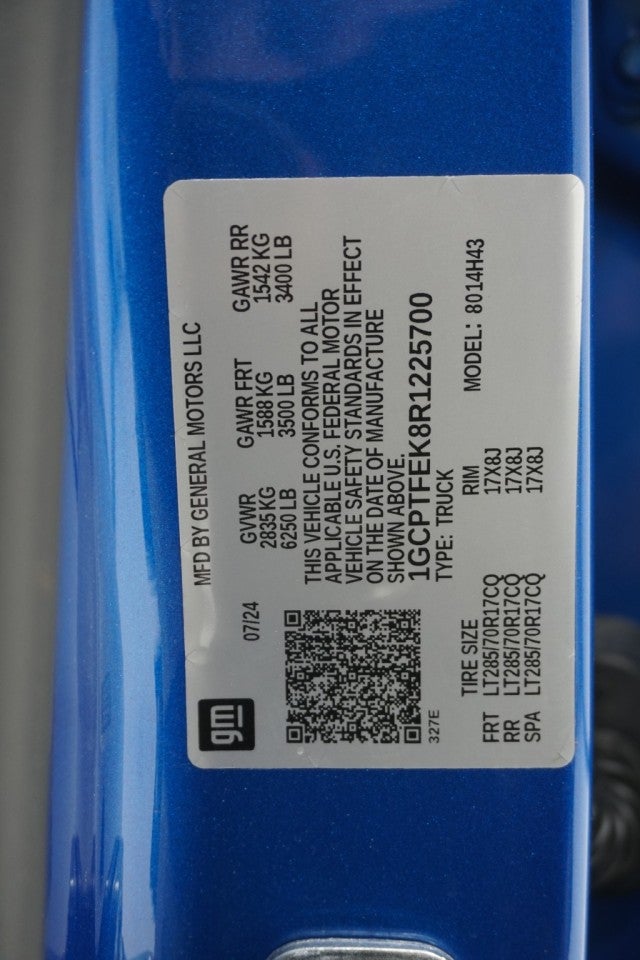 Audio system feature, 6-speaker system|wireless phone projection, for apple carplay and android auto|11.3 diagonal advanced color lcd display with google built-in compatibility including navigation capability, connected apps, personalized profiles for each driver's settings, natural voice recognition and phone integration for wireless apple carplay/wireless android auto for compatible phones (terms and limitations apply.)|chevrolet connected services capable (terms and limitations apply. see onstar.com or dealer for details.)|wheel, spare, 17 x 8 (43.2 cm x 20.3 cm) steel|mirrors, outside heated power-adjustable|moldings, black beltline|headlamps, led|locking cylinder tailgate, keyed cylinder lock|wheels, 17 x 8.0 (43.2 cm x 20.3 cm), graphite and oxide gold aluminum|glass, privacy glazing rear side windows|windshield, solar absorbing|fog lamps, front led|glass, solar glazing front side windows (vehicles produced prior to october 14, 2024 will include (agj) glass, solar glazing front side windows. vehicles production on or after october 14, 2024 will include (agg) glass, solar glazing front side windows.)|tire, spare lt285/70r17, blackwall|tailgate, ez-lift and lower|tailgate, remote locking, (locks and unlocks with key fob)|tires, lt285/70r17, blackwall, 33 od mt (requires (r1u) 17 aluminum wheels or (rpp) 17 transit wheel.)|mirror caps, painted (painted black.)|glass, deep-tinted|stowflex tailgate, storage compartment, lockable|wheel flares|exterior, b-pillar applique (not available on (gba) black and (gxn) harvest bronze metallic.)|glass, solar glazing front side windows (vehicles produced prior to october 14, 2024 will include (agj) glass, solar glazing front side windows. vehicles production on or after october 14, 2024 will include (agg) glass, solar glazing front side windows.)|intellibeam, automatic high beam on/off|engine cover, appearance|cargo box light, back of cab|headlamp control, automatic on and off with automatic delay|leds tail lamp, stop|door handles, body-color (vehicles produced after 7/9/2024 with (ulv) zr2 bison edition will include gloss black painted door handles.)|bedliner, spray-on, black with chevrolet logo (includes zr2 logo.)|seats, heated driver and front passenger|cruise control, electronic, automatic (not available with (cwm) technology package.)|window, power front, passenger express down|floor covering, color-keyed carpeting|seat trim, cloth/evotex|map pocket, front passenger seatback|floor mats, carpeted front|power outlet, 120-volt, located in the rear of center console|handles, door release, front and rear, chrome|chevrolet connected access capable (subject to terms. see onstar.com or dealer for details.)|floor mats, carpeted rear|mirror, inside rearview auto-dimming|air conditioning, dual-zone automatic climate control|defogger, rear-window electric|window, rear-sliding, manual|visors, driver and front passenger illuminated sliding vanity mirrors|speedometer, miles/kilometers|windows, remote express down all windows|power outlet, 120-volt, bed mounted|keyless open and start|steering wheel, wrapped|steering column, tilt and telescoping|usb ports, rear, dual, charge-only|windows, power rear, express down|windows, power with driver express up/down|seat adjuster, driver 8-way power|seat adjuster, passenger 4-way manual|lighting, interior, dual reading|lighting, interior, center dome|heater, air conditioning duct, rear passenger|seat adjuster, power driver lumbar control|steering wheel controls, mounted audio controls|driver information center, 11 diagonal fully-digital display|theft-deterrent system, unauthorized entry|door locks, power|seat, rear 60/40 split-folding bench with storage|air vents, rear|power outlet, 12-volt located in center console bin|console, floor front compartment with cup holders and cell phone storage|seats, front bucket|remote vehicle starter system|usb ports, 2 (first row) located on console|frame, fully-boxed|engine control, stop/start system disable button|automatic stop/start|trailering package, heavy-duty includes trailer hitch and 7-pin connector|switch, flexride mode system|vehicle health management, provides advanced warning of vehicle issues|rocker panel protector (not available with (vzt) lpo, off-road assist steps.)|capless fuel fill|engine, turbomax (310 hp [231 kw]